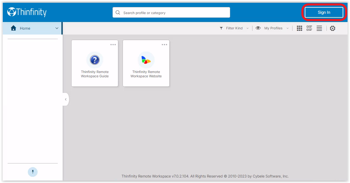 - First, open an HTML5 capable browser, navigate to the Workspace Portal and click Sign In.